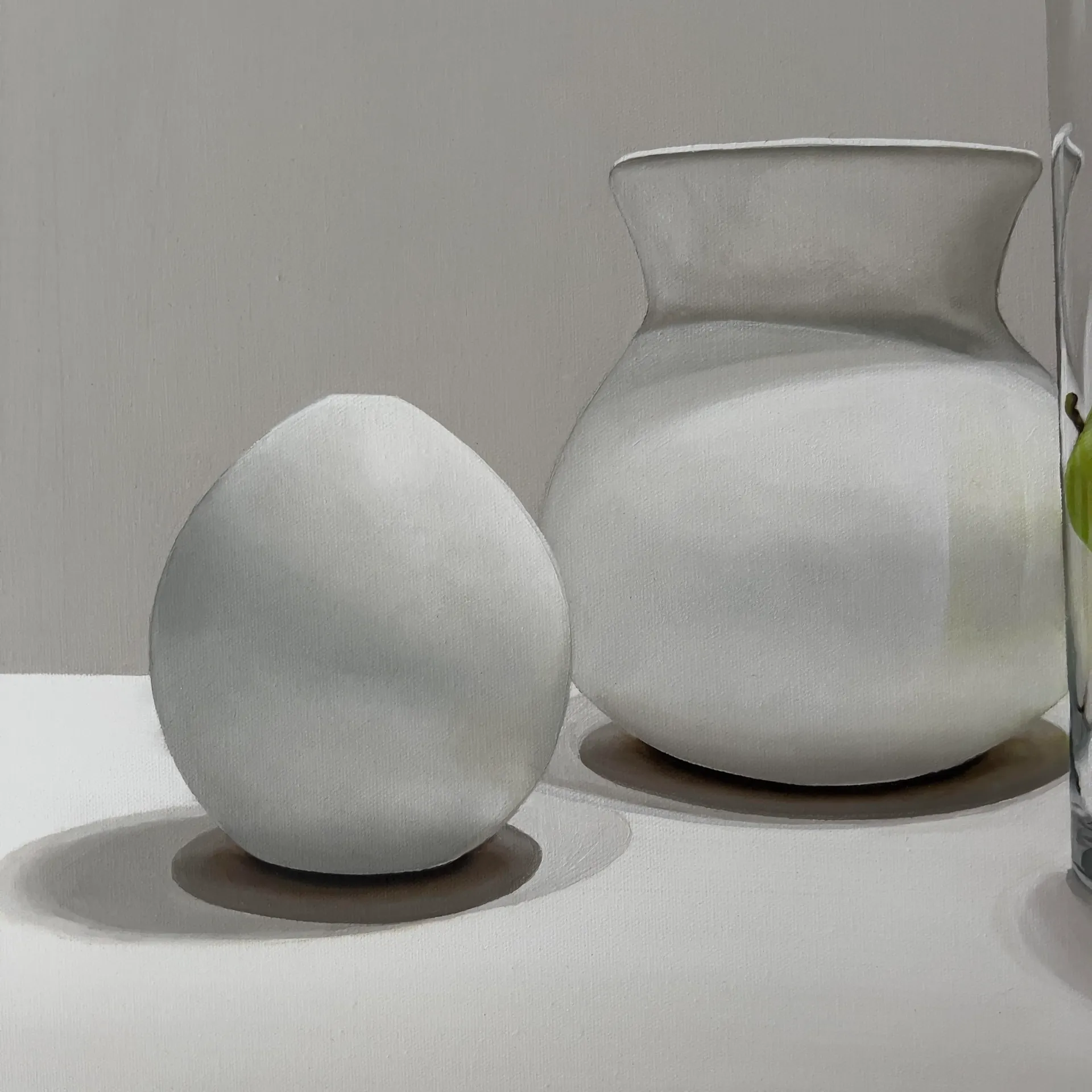 oils on linen, shadow box framed in white